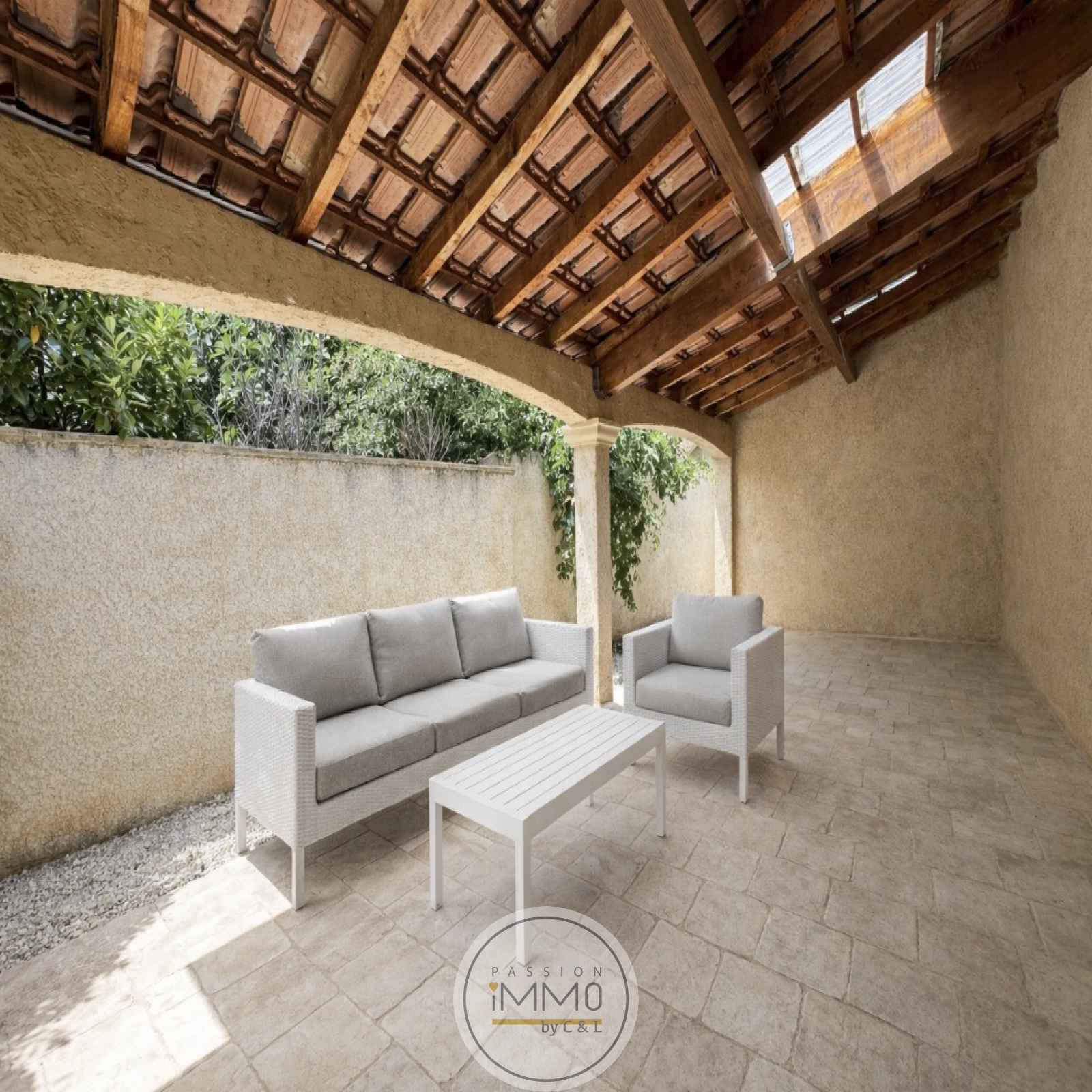 Le bien dispose d'un jardin privatif et d'une belle terrasse couverte de presque 30m², idéal pour profiter des beaux jours.
