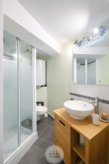 D'une superficie de 57 m², cette maison comprend une pièce de vie avec cusine lumineuse, deux chambres, deux salle d'eau et deux WC.