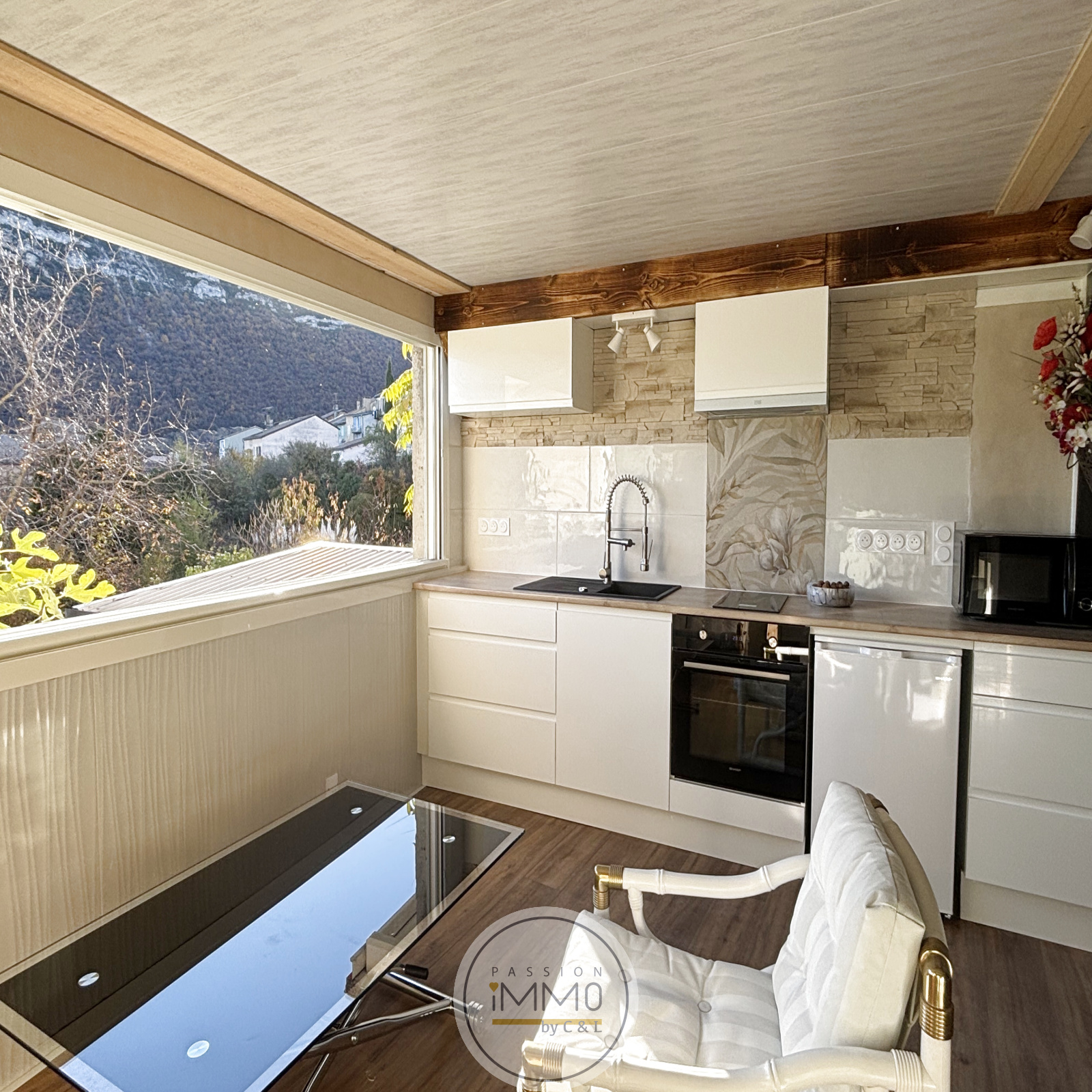 Le bien dispose d'une vue côté montagne, on dirait un tableau.